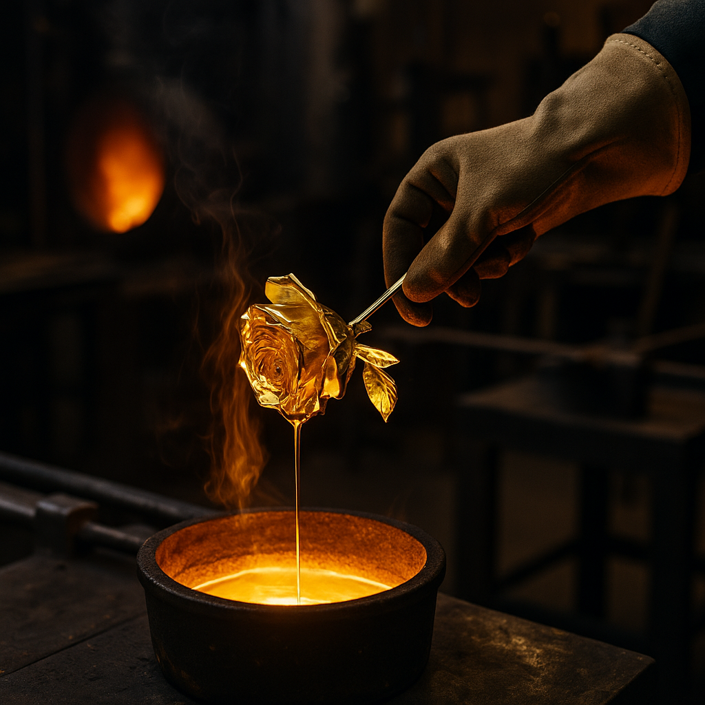 A real rose dipped in 24K gold. Preserved to last an eternity.